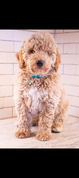 Sookie is an F1B mini Goldendoodle that is about 20 pounds, born in 2024. She is the cutest! Can't wait to see her become a mom!